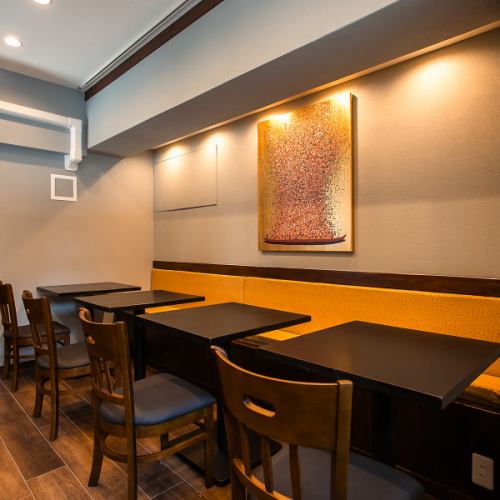 2名様用のテーブル席をご用意しております。デートやご友人同士でのお食事に最適です。お食事と会話を楽しみながら思い出に残るひとときをお過ごしください。